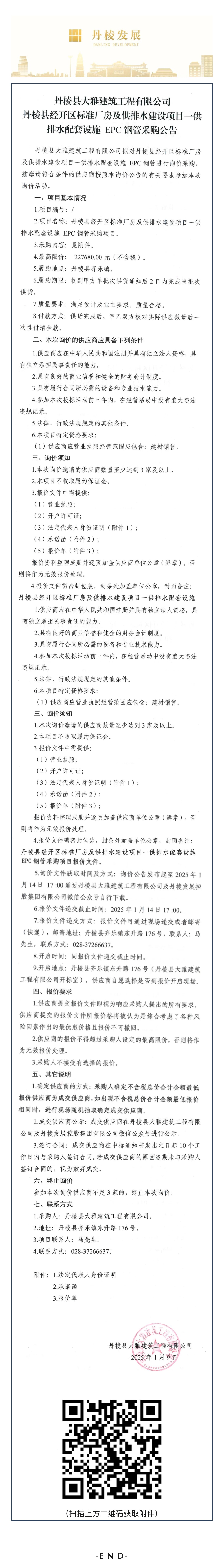 丹棱縣大雅建筑工程有限公司丹棱縣經開區標準廠房及供排水建設項目一供排水配套設施 EPC鋼管采購公告
