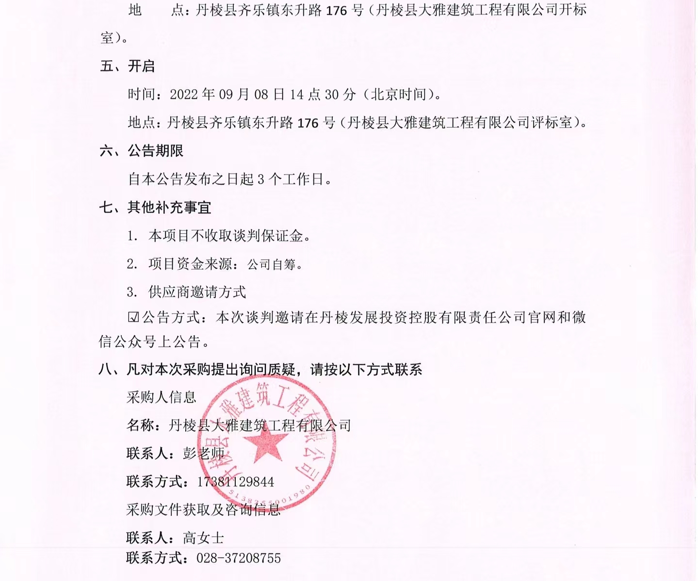 丹棱縣熊河碥片區市政基礎設施建設項目一期(城市雙修)設計施工總承包(EPC)異形構筑物(親水亭)采購項目談判邀請公告