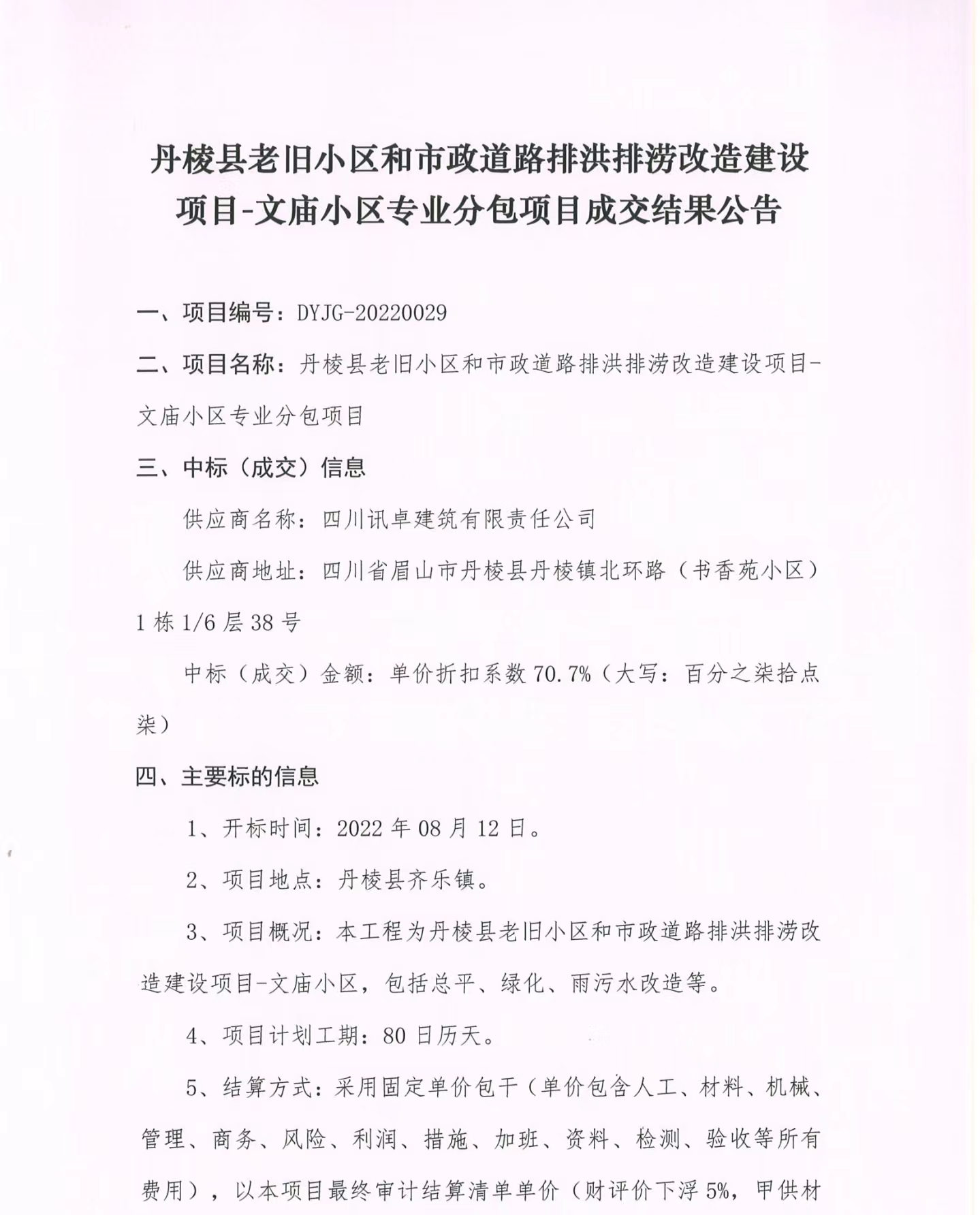 丹棱縣老舊小區和市政道路排洪排澇改造建設項目-文廟小區專業分包項目成交結果公告