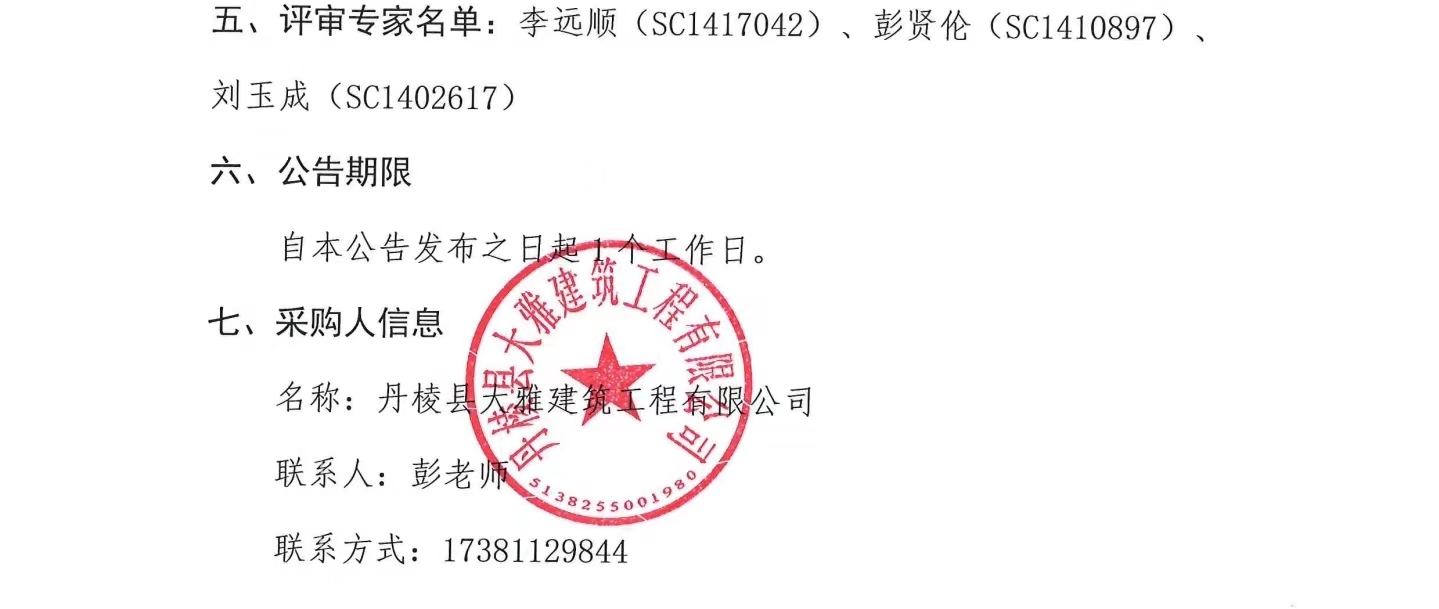 丹棱縣熊河碥片區市政基礎設施建設項目一期(城市雙修)設計施工總承包(EPC)透水瀝青混凝土工程專業分包項目成交結果公告