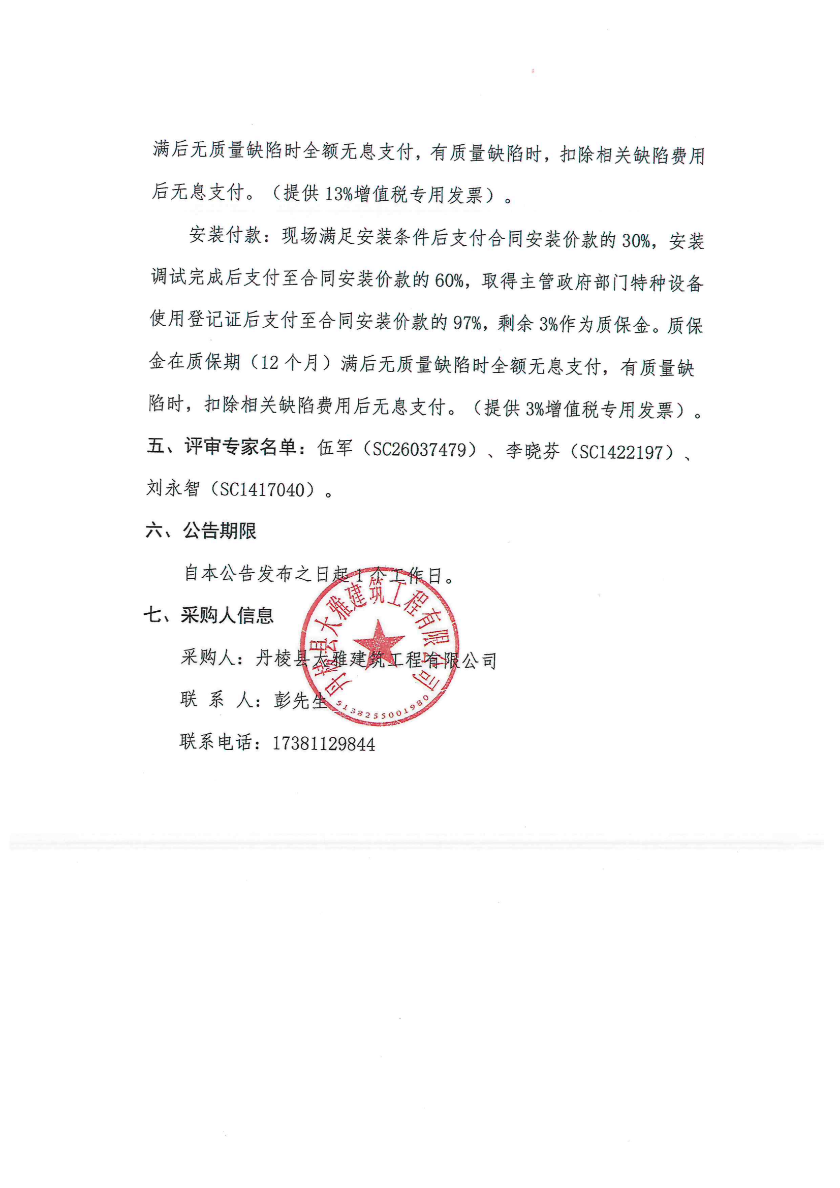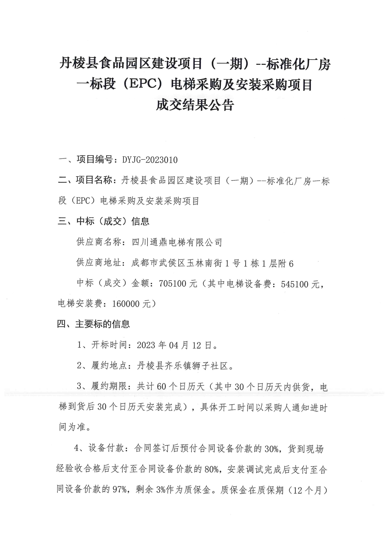 丹棱縣食品園區建設項目(一期)--標準化廠房一標段(EPC)電梯采購及安裝采購項目成交結果公告