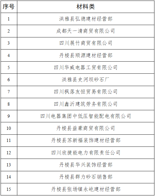 附件:丹棱發展投資控股有限責任公司第二批入庫供應商名單