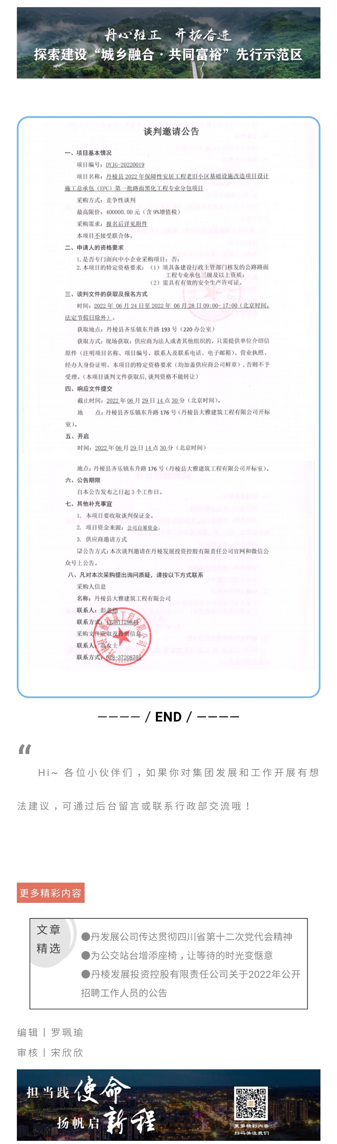 丹棱縣2022年保障性安居工程老舊小區基礎設施改造項目設計施工總承包(EPC)第一批路面黑化工程專業分包項目談判邀請公告
