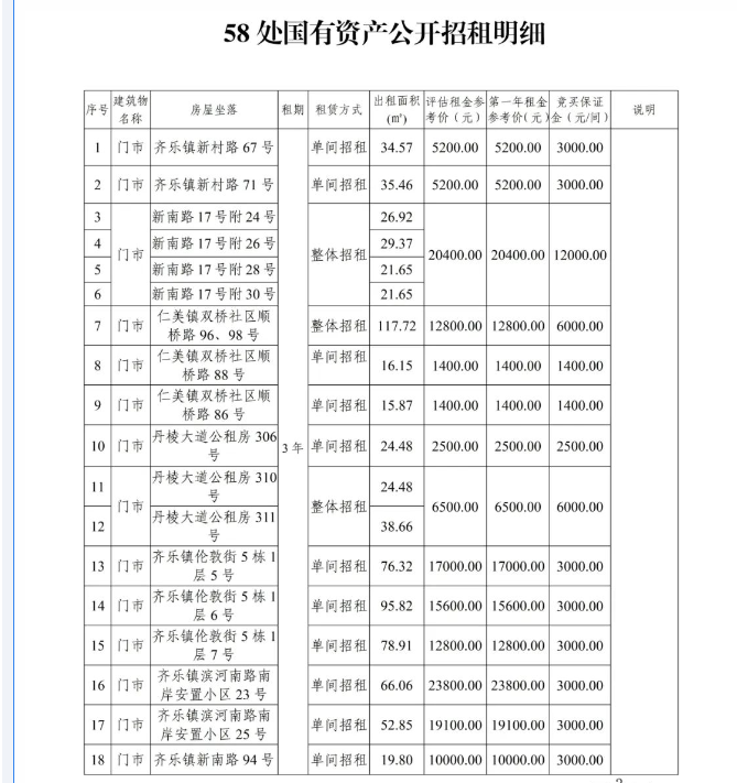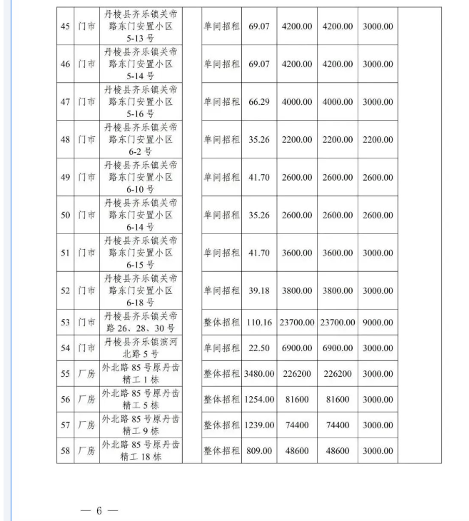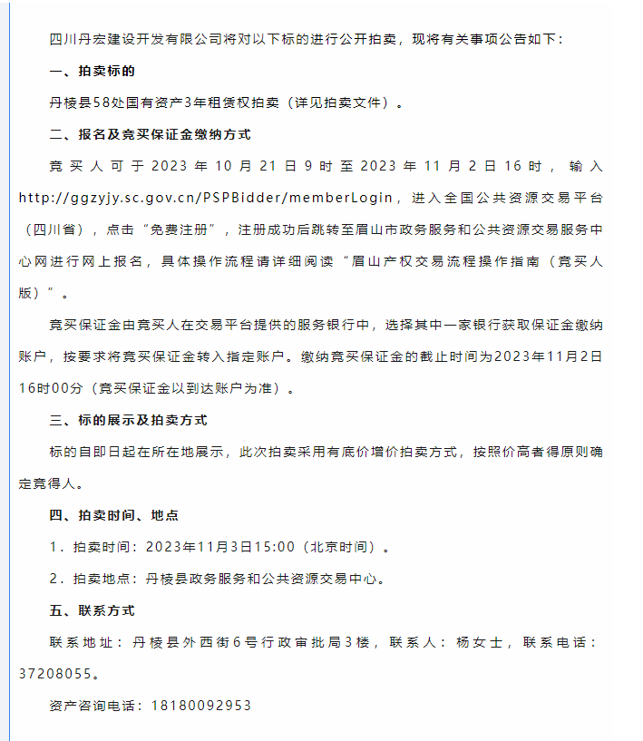 丹棱縣58處國有資產3年租賃權拍賣公告