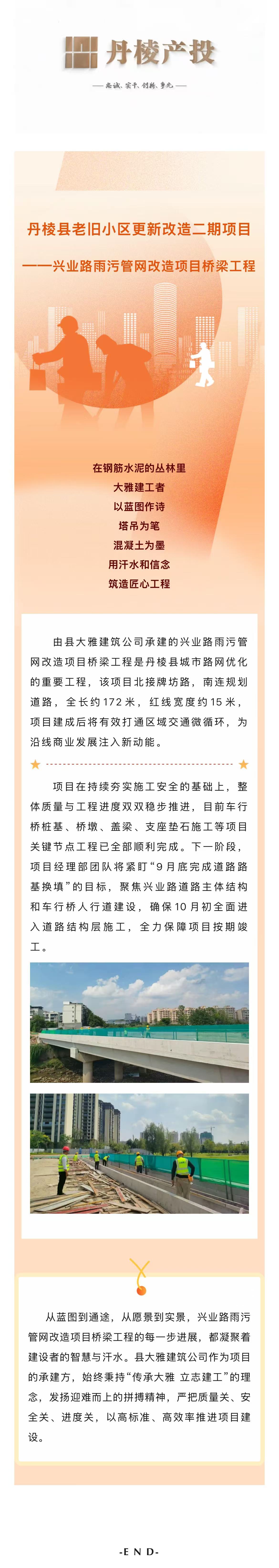 【縣大雅建筑公司】丹棱縣老舊小區更新改造二期項目—興業路雨污管網改造項目橋梁工程全力推進中