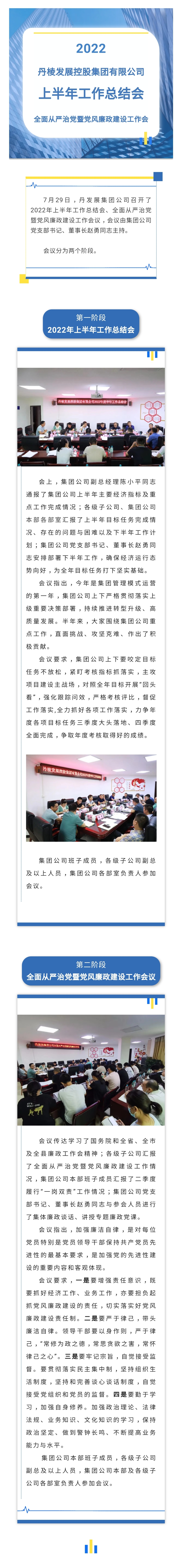 丹發展集團公司召開2022年上半年工作總結會、全面從嚴治黨暨黨風廉政建設工作會