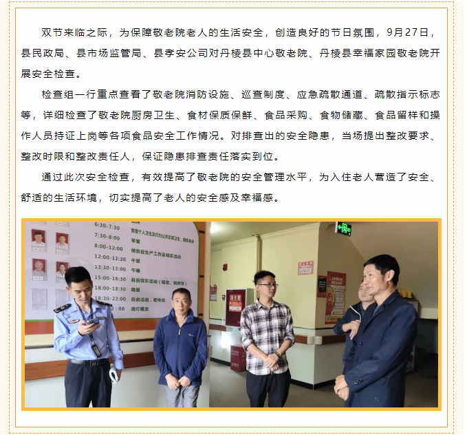 安全生產(chǎn)︱縣孝安公司開展節(jié)前安全檢查,筑牢敬老院安全防線