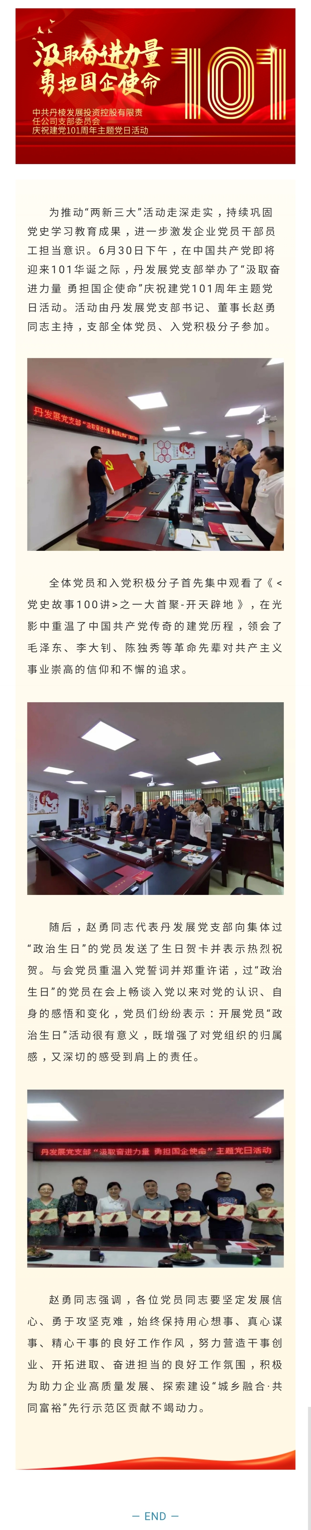 中共丹棱發(fā)展投資控股有限責(zé)任公司支部委員會“汲取奮進力量 勇?lián)鷩笫姑睉c祝建黨101周年主題黨日活動