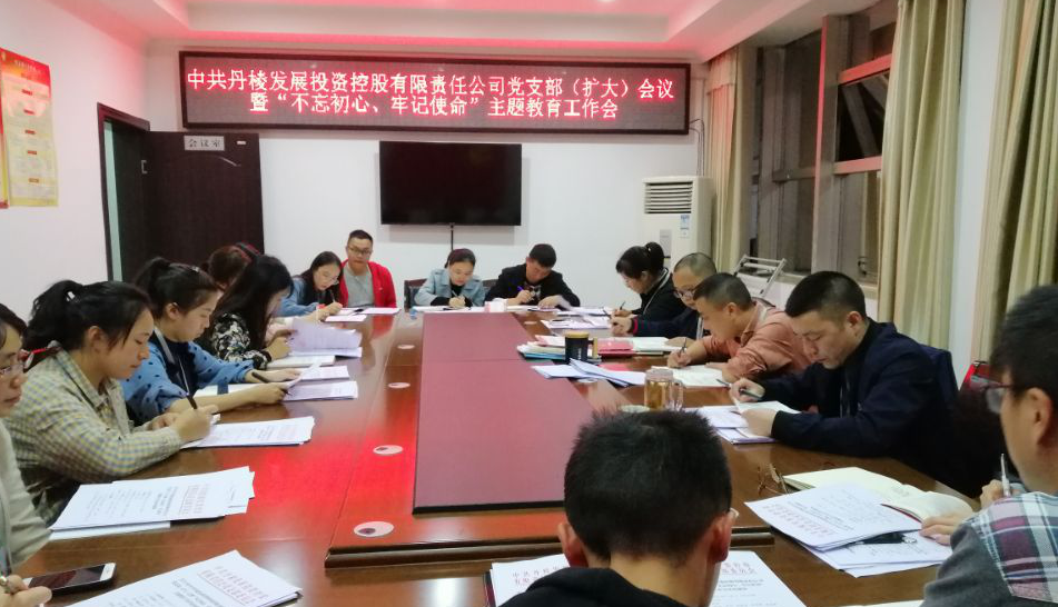 10月16日,中共丹棱發展投資控股有限責任公司黨支部召開(擴大)會議暨“不忘初心、牢記使命”主題教育,會議由黨支部書記趙勇同志主持,公司全體黨員和干部職工參加會議。